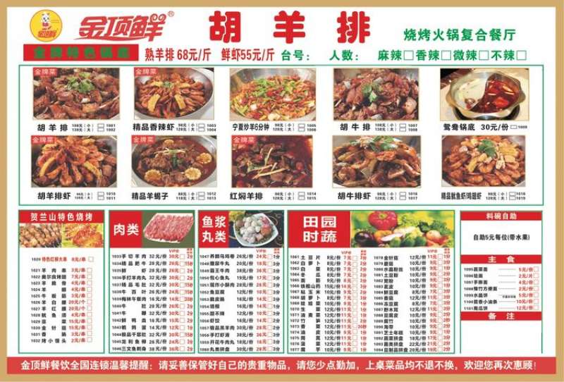 金頂鮮寧夏特色系列胡羊排燒烤火鍋復(fù)合餐廳2018年持續(xù)火爆招商開店中。